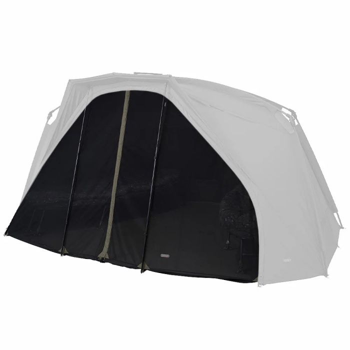 Das innovative magnetische Selbstschließsystem ermöglicht nicht nur ein müheloses Öffnen und Schließen, sondern gewährleistet auch blitzschnelles Verlassen des Bivvys, sobald Ihr Bissanzeiger Alarm schlägt. Die einfache Zip-Befestigung erlaubt Ihnen, das Panel im Handumdrehen hinzuzufügen oder zu entfernen, während die praktischen Bindemöglichkeiten es Ihnen ermöglichen, beide Seiten nach Bedarf zurückzurollen.