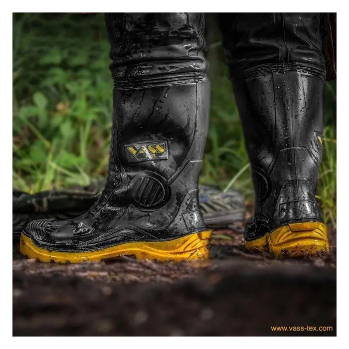 Die wasserdichte Konstruktion mit Vass Quad-geschweißten Nähten sorgt für uneingeschränktes Vertrauen in jeder Angelsituation. Die Vass Quick Release Buckles und die elastischen Vass Dark Camo Gurte gewährleisten nicht nur Sicherheit, sondern ermöglichen auch ein schnelles An- und Ausziehen für maximalen Komfort.