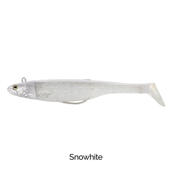 Der Haken ist im Gummikörper versteckt und kann daher leicht in Seetang oder an steilen und schroffen Felsenufern gefischt werden. Der Gummifisch kann dank eines Schnellwechselsystems mit wenigen, einfachen Griffen in Sekundenschnelle gewechselt werden.