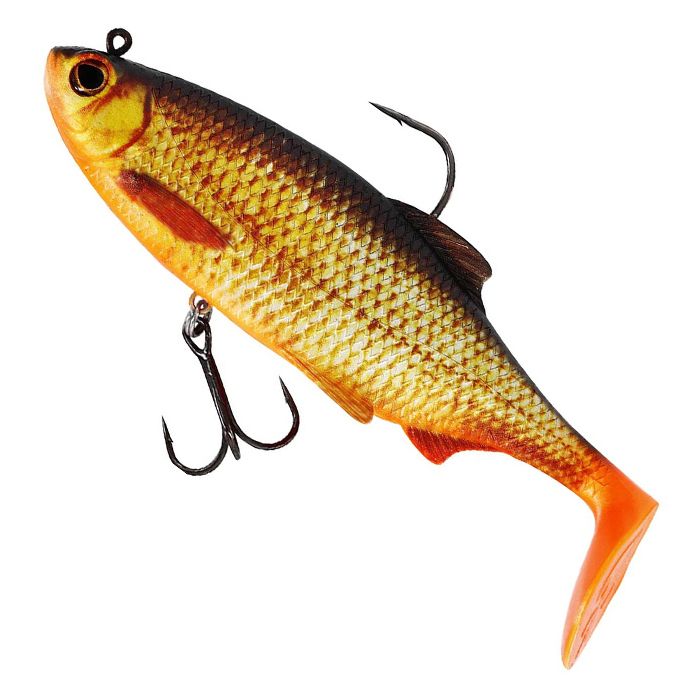 Bei dieser Version von Ricky the Roach muss auf die Einholgeschwindigkeit geachtet werden. Während das kürzere Schwanzteil den kompakten Körper ruhig durchs Wasser gleiten lässt, bewegt sich der große Schaufelschwanz hektisch und ungleichmäßig. Der Köder fängt sofort nach dem Eintauchen an, zu arbeiten. Bei jeder Einholgeschwindigkeit macht er rollende Bewegungen um die eigene Achse mit geringen Ausschlägen. Er sieht genau wie ein echtes kleines Rotauge aus. Friedfischangler würden sich über einen Anbiss freuen und Raubfische würden diesen kleinen Burschen jederzeit gerne vernaschen. Perfekt zum Werfen und Jiggen auf größere Raubfische!