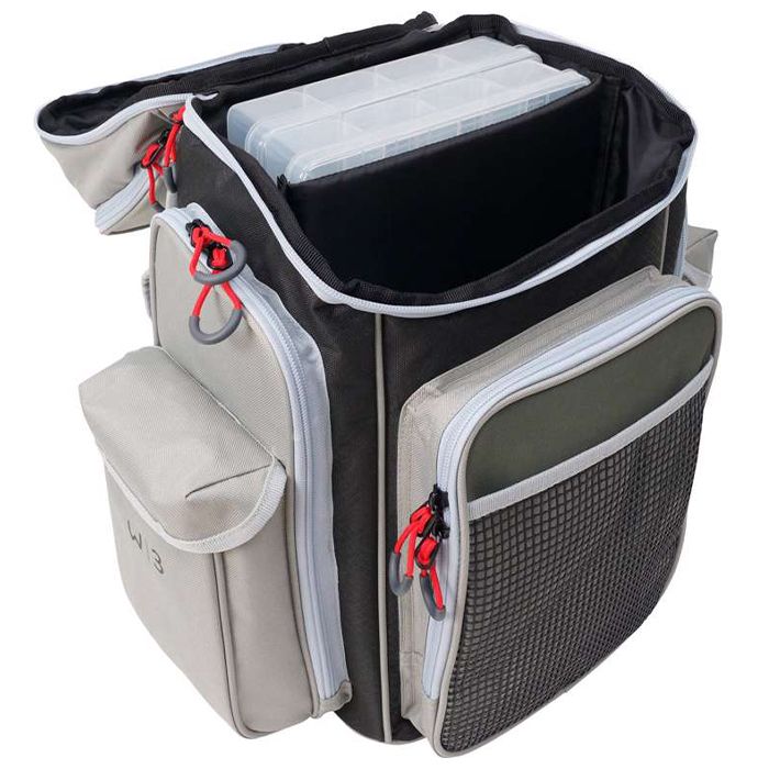 Der W3 Backpack Plus fasst alles, was Du für einen Tag am Wasser brauchst. Der Hauptfach-Kühler hält Dein Essen frisch. Diese Tasche wird mit Köderboxen, mehreren Taschen, Klettverschluss-Werkzeuggurten und übergroßen Reißverschlüssen geliefert. Die verstellbaren und gepolsterten Gurte machen das Tragen bequem.