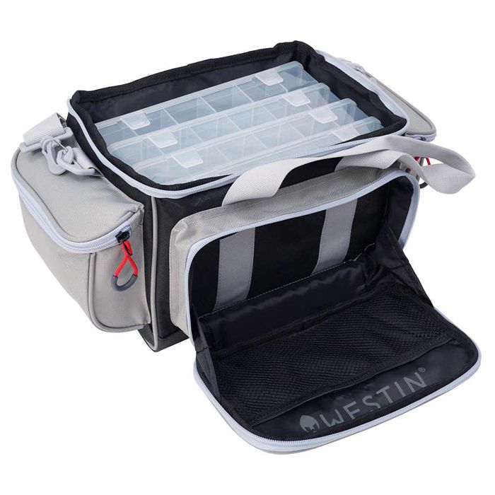 Der W3 Lure Loader hat einfach alles: Köderboxen, große Taschen und übergroße Reißverschlüsse. Dies ist die perfekte Tasche, um Deine Angelköder und Dein Zubehör zu organisieren. Die Vordertasche verfügt über ein Netzinnenfach, die Seitentasche über einen elastischen Werkzeugorganisator, um Zangen und Werkzeuge an der richtigen Stelle zu halten.
