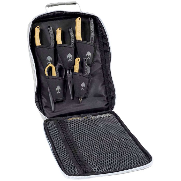 Store your tools and pliers in this cleverly thought out W3 Tool Bag. The neoprene tool holders secure pliers keeping them in place and ready for use in an instant. The W3 Tool Bag features two mesh pockets, one inside and one on the outer. There are five neoprene tool holders inside the bag and two removable velcro holders on the outside. The perfect solution for storing your tools.