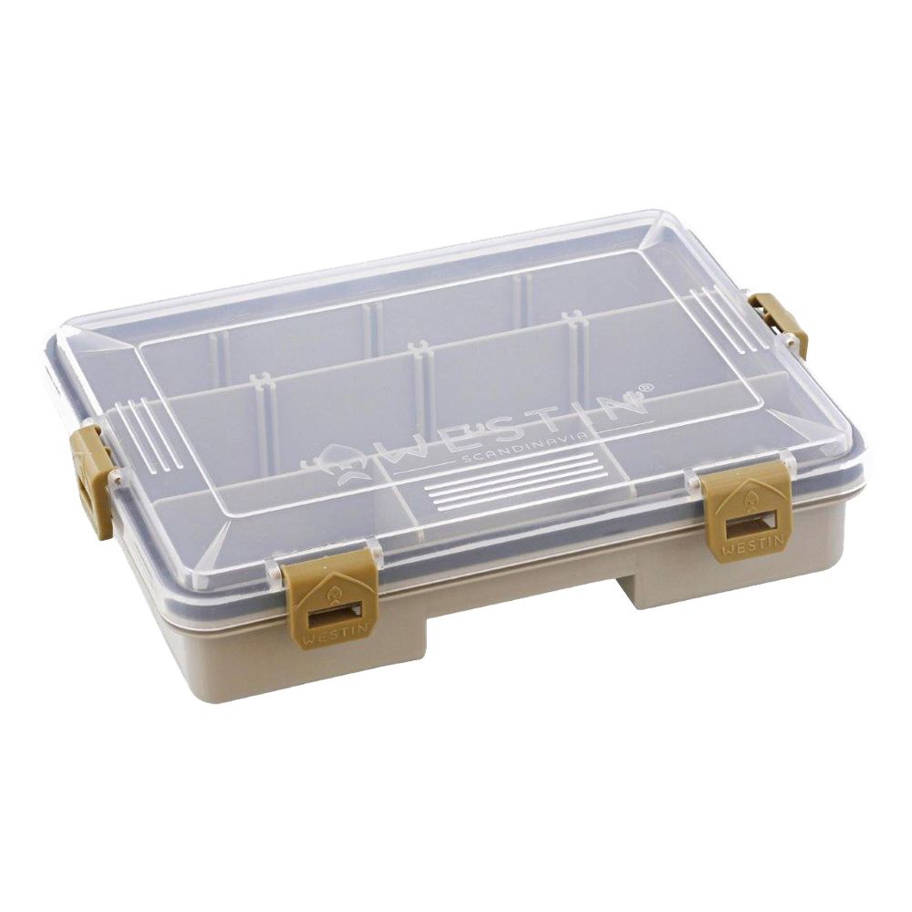 Die wasserdichte W3 Tackle Box von Westin ist die Lösung, wenn du deine Ausrüstung auf dem Boot oder am Wasser trocken halten willst. Die Box verfügt über eine wasserfeste Gummidichtung an der Innenseite des Klappdeckels, die das Eindringen von Wasser verhindert. Aromatisierte Köder in Flüssigkeit können ebenfalls in dieser Box aufbewahrt werden, ohne dass sie in deinem Boot, deiner Tasche oder deinem Auto auslaufen. Diese Box ist ein S7-Modell mit drei fixen Fächern im vorderen Drittel und zwei fixen Fächern über die gesamte Länge mit sechs Trennwänden.