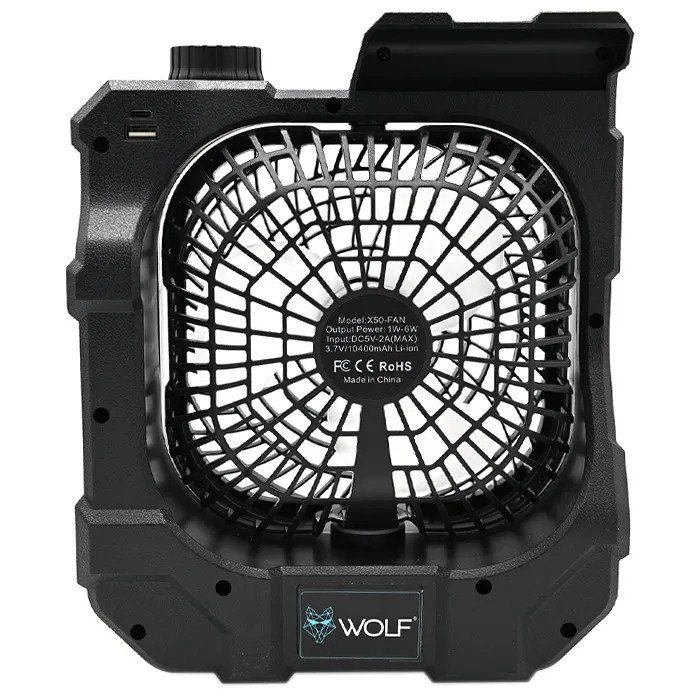 Wolf VOLTAIR Fishing Portable Fan & Powerbank, The Wolf VOLTAIR Fishing Portable Fan & Powerbank is an all-in-one device that is perfect for serious anglers. It proudly boasts both a fan and a light, with easily adjustable variable speed dials to give you just the right amount of cooling power, plus it offers noiseless operation even when running at full speed. On top of that, the 1040 mAh rechargeable battery allows for up to 60 hours of continuous use depending on settings. Its night light provides a 1.5W LED illumination with three levels of adjustable brightness, ideal for fishing late or early in the day when visibility is not optimal. And best yet this 3-in-1 fisherman's companion offers automatic rotation, with a 270 degree multi-purpose angled fan directed exactly where you want it! The Wolf VOLTAIR Fishing Portable Fan & Powerbank truly is an invaluable piece of equipment for any serious fisherman looking to take their sport to the next level.