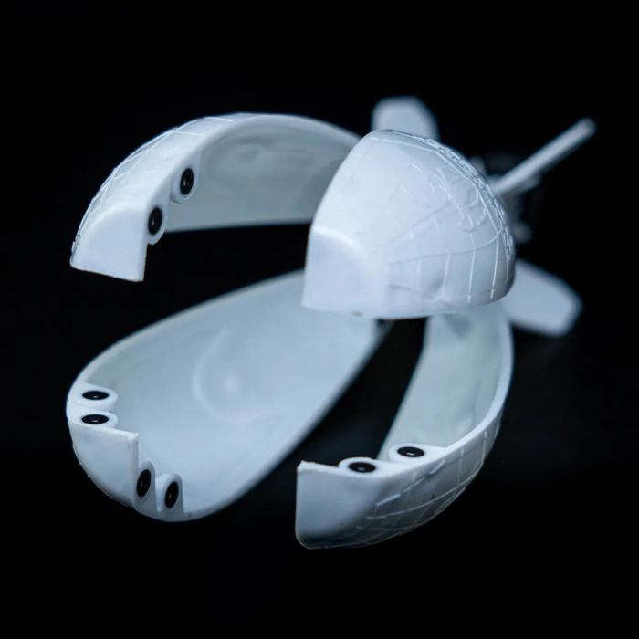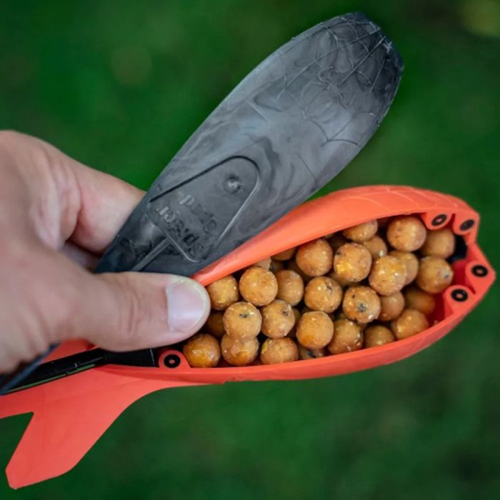 Wolf Fishing X-Spod Performance L, The X-Spod Performance is a unique floating spod with a compartment that splits four ways to deliver your bait. This is the larger of the X-Spod range and is excellent for getting the maximum amount of bait at range. Once the spod is clipped up to the distance required you can accurately maintain an area of free offerings. The main space can be loaded in two different ways. Opening in a two section configuration you can load by scooping up bait and closing the 2 halves. Open one section, and you can load the entire container. Capable of casts in excess of 160 metres this unique spod can be filled with either particles, boilies, groundbait, pellets or liquids.