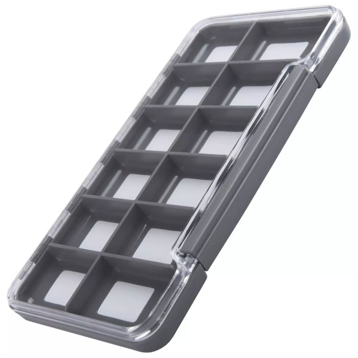 Ein Klarsichtdeckel macht die Auswahl der Fliegen einfach und schnell. Mehrere Fächer, insgesamt 12, bieten viele Möglichkeiten für alle Arten von Trockenfliegen und die wasserdichten Verschlüsse sorgen dafür, dass die Fliegen trocken bleiben. Enthalten sind magnetische Fliegenbetten, die Ihre Muster sicher und geschützt halten.